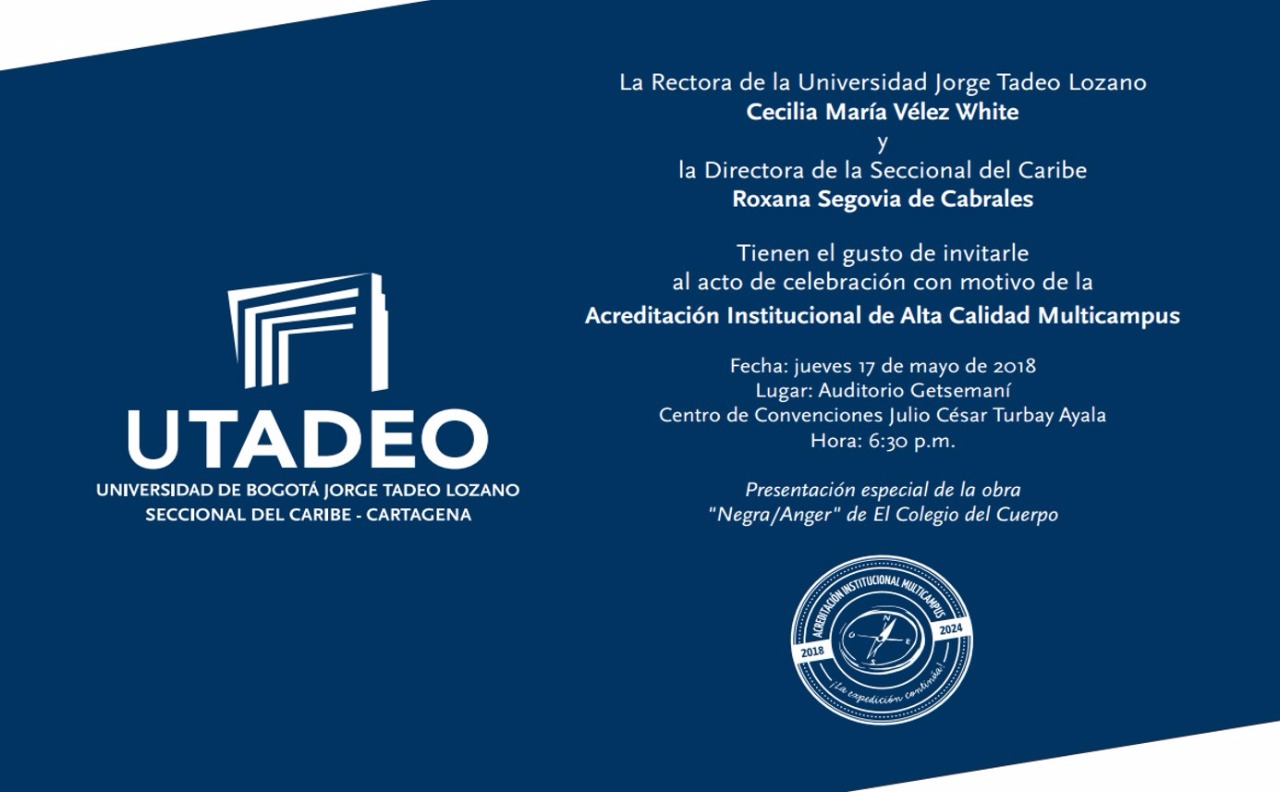 Recientemente la UTADEO Seccional Caribe obtuvo por primera vez, la ACREDITACIÓN INSTITUCIONAL DE ALTA CALIDAD MULTICAMPUS, de la mano de la UTADEO Bogotá.