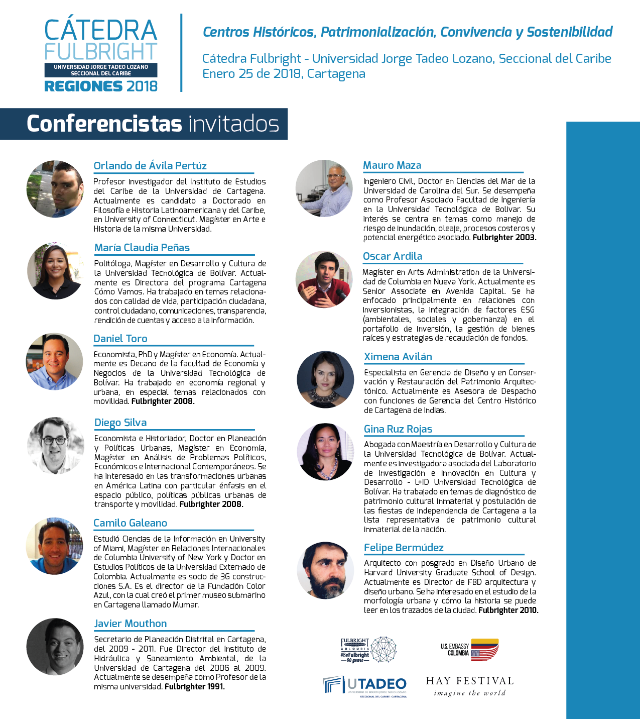 “Para la Utadeo la Cátedra Fulbright es una oportunidad para seguir demostrando el compromiso que ha tenido con la ciudad durante los últimos 41 años, y seguir poniendo de manifiesto el interés que tiene el programa de Arquitectura sobre los problemas urbanos que se evidencian en la ciudad, por eso junto con la colaboración de Fulbright, se ha buscado que los paneles sean abanderados por líderes que tienen un compromiso con diferentes temas de la ciudad y en común acuerdo, se ha planteado esta reflexión, sobre todo en un momento político tan coyuntural como el que atraviesa hoy, Cartagena de Indias”, afirma Joel Samper López, profesor Utadeo Caribe y moderador del segundo panel de la Cátedra.