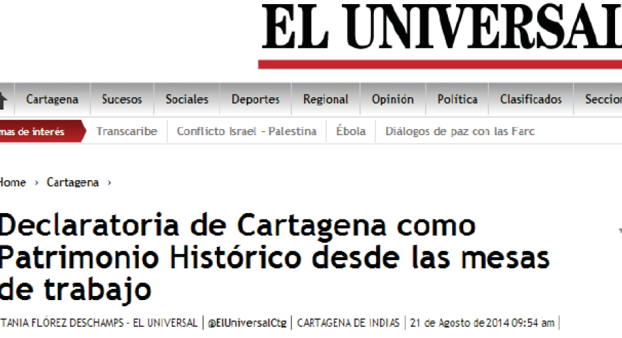 El periódico El Universal publicó ne su sección de Educación una nota acerca de las Mesas de Trabajo sobre Patrimonio que adelanta la Utadeo en convenio con entidades como el IPCC, AECID, la Sociedad Colombiana de Arquitectos, entre otras entidades.